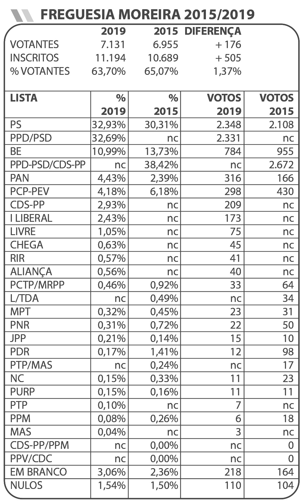 Resultados oficiais das Legislativas 2019 – Fonte SGMAI em 201/10/07