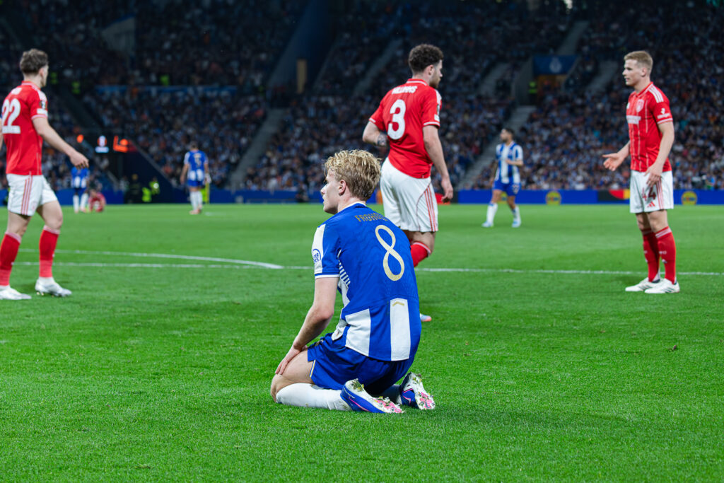 A vantagem, no entanto, durou pouco. Ainda o Estádio do Dragão festejava quando um atraso longo de Martim Fernandes, desde o meio-campo, surpreendeu Diogo Costa e resultou no empate para a equipa orientada por Vítor Pereira.